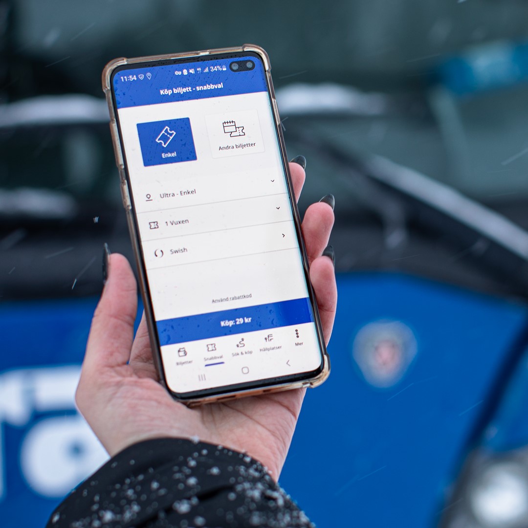 Reser ni i ett sällskap vid samma tillfälle? Köp flera enkelbiljetter samtidigt och få automatiskt 20 % rabatt på hela köpet. Köpet behöver ske i förväg i appen, på en bemannad busstation eller hos ett ombud. Det gäller inte ombord på bussen eller i en biljettautomat.